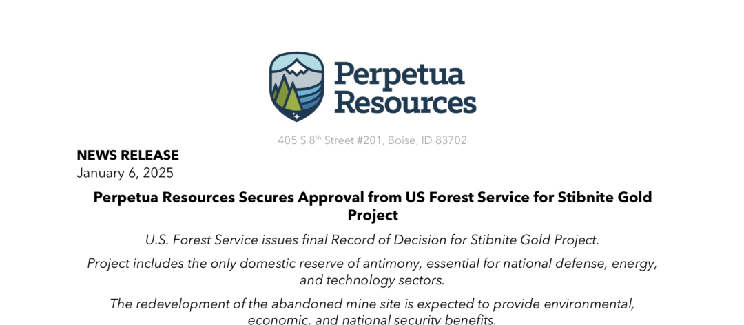我们以锑为例,为了增加锑的产能,美国政府近期把宝押在Perpetua Resources公司位于爱达荷州的金锑项目(Stibnite Gold Project)上。笔者查阅历史资料发现,80多年前,这处矿坑曾经因为严重的环境破坏问题停产。要想重开此矿,Perpetua Resources公司需要先处理好棘手的历史遗留问题。